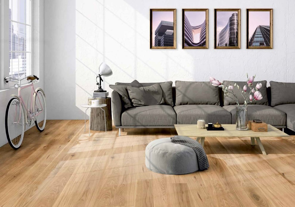 Neben der Wahl des Dielendesigns kannst du auch zwischen mattlackierten und naturgeölten Oberflächen wählen. Die naturgeölte Oberfläche betont die natürlichen Strukturen des Holzes und verleiht deinem Boden eine